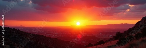 © Namtip, Obraz premium Sun dips below vibrant Johannesburg, casting long shadows , photography, Johannesburg