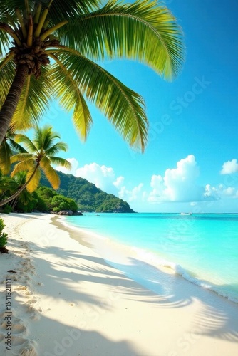 Fototapeta premium Sun-drenched beach, turquoise water, palm trees, coast, vacation, exotic