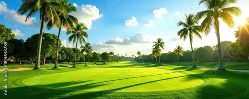 © ทุติยาภรณ์ หงษา, Obraz premium Sun-drenched fairway, palm trees sway gently in breeze, Caribbean, tee, exotic