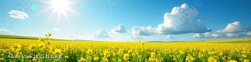 Obraz premium Sun-drenched field, cumulus clouds drift across vibrant blue, element, summer