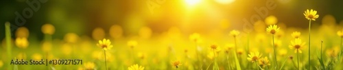 Fototapeta premium Sun-drenched meadow, bokeh effect, vibrant yellow hues, pretty, image, element