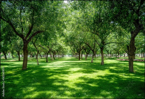© setiyo, Fototapeta premium Sun-drenched orchard pathway