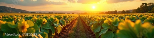 © Hugnaka, Fototapeta premium Sun-drenched tobacco fields stretch towards the sky, golden, tobacco