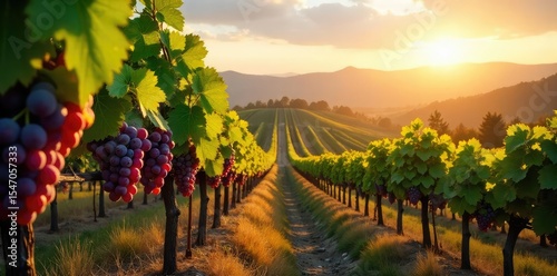 © สิริวุฒิ นาคโคตร, Fototapeta premium Sun-drenched vineyards rolling across the California hillsides, ripe grapes hanging heavy on the vines, ready for harvest A picturesque scene of California wine country , beauty, scenery