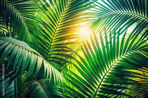 Fototapeta premium Sun-drenched vintage palm leaves cast delicate shadows on a pristine white background.
