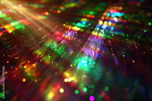 © Isuru, Obraz premium Sun flares create rainbow light effect on black background.