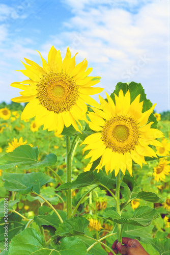 Fototapeta premium Sun Flowers,Helianthus annuus, grown as a crop for its edible oil and edible fruits