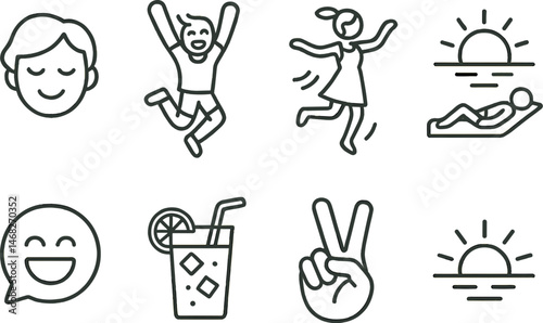 © Іван Ніколов, Obraz premium Sun icon set. Summer set linear