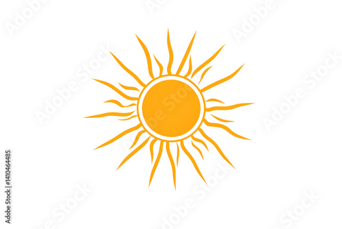 Fototapeta premium Sun illustration. Gold sunburst over dark. Central orb. Sharp rays emanate. Bright, stylized, stark contrast