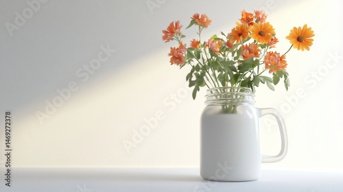 Fototapeta premium Sun-kissed blossoms in a classic jar, radiating warmth and delicate beauty