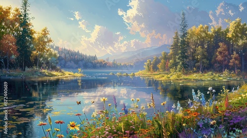 © rachmat, Naklejka premium Sun-kissed meadows in idyllic setting