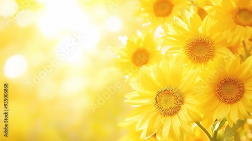 Fototapeta premium Sun-Kissed Sunflower Bloom: A radiant cluster of sunflowers bathed in warm...