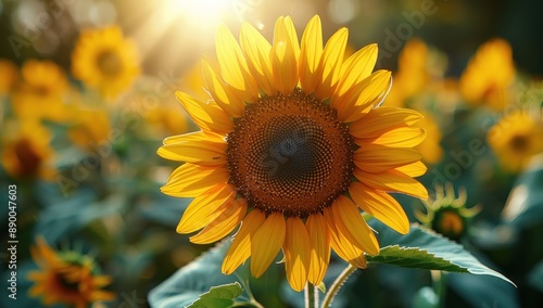 Fototapeta premium Sun-Kissed Sunflower in a Field of Gold