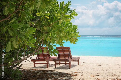 Obraz premium Sun loungers on beach at sea resort