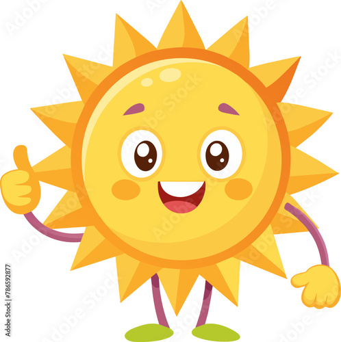Fototapeta premium sun mascot doing thumbs up gesture , cute design