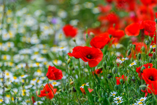 © ggfoto, Fototapeta premium Sun on poppies copy space for text