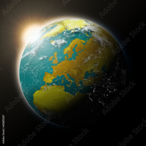 Fototapeta premium Sun over Europe on planet Earth