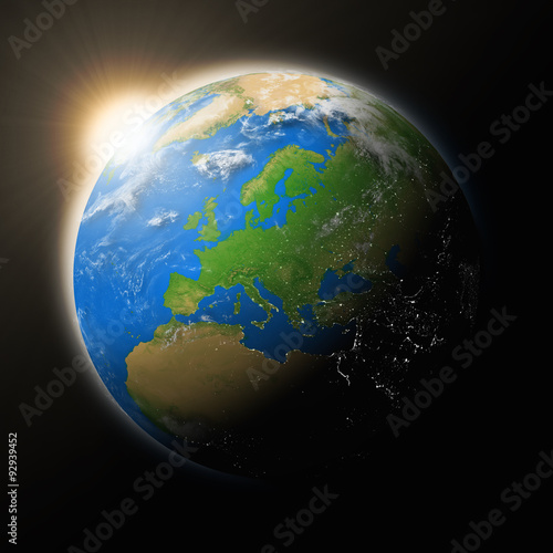 © harvepino, Fototapeta premium Sun over Europe on planet Earth