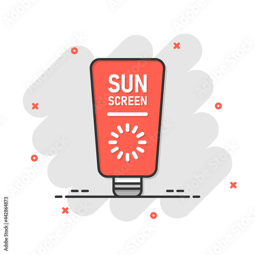 Fototapeta premium Sun protection icon in flat style. Sunblock cream vector illustration on...