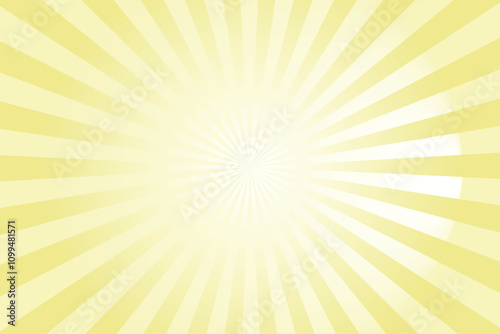 © cnh, Fototapeta premium Sun ray vector background. Custard yellow radial beam sunrise or sunset light retro design illustration. Light sunburst glowing background.