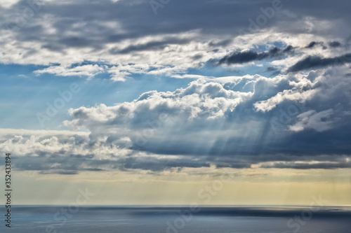 © Emagnetic, Obraz premium Sun rays and rain from a remote cloud at sea