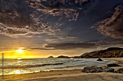 © Mark, Fototapeta premium Sun Rays at Sunset on Beach
