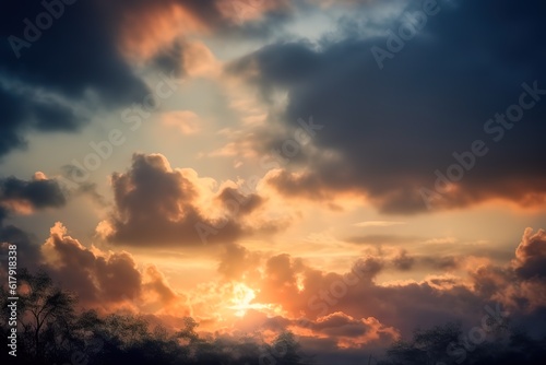 Obraz premium sun rays coming down through a cloudy sky. AI Generated