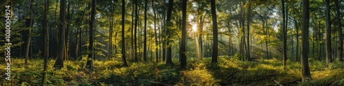 Fototapeta premium Sun Rays Illuminating a Forest