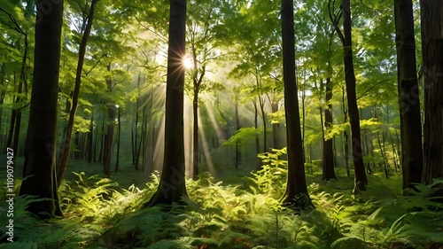 Obraz premium sun rays in the forest