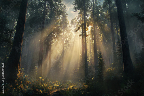 Obraz premium sun rays in the forest