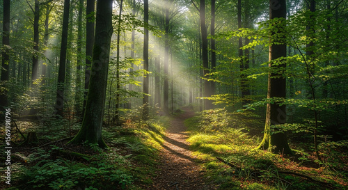 © Benjamin, Obraz premium sun rays in the forest
