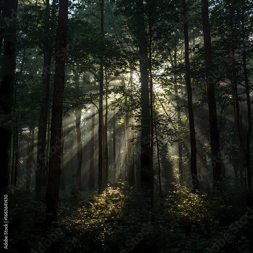 © Phitsanuwat, Obraz premium sun rays in the forest