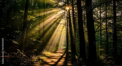 Obraz premium sun rays in the forest