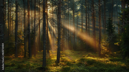 Obraz premium sun rays in the forest