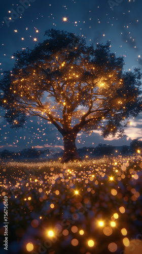 Naklejka premium Sun rays in the forest. AI generated art illustration.