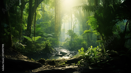 Obraz premium sun rays in the forest Generated by mid journey