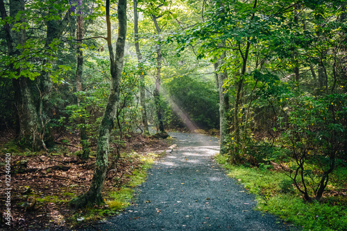 Obraz premium Sun rays in the forest, seen on the Limberlost Trail in Shenando