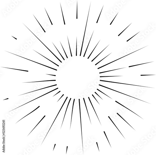 Fototapeta premium Sun rays or sunshine linear drawing