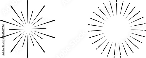 © Chathurika, Obraz premium Sun rays or sunshine linear drawing. Vector