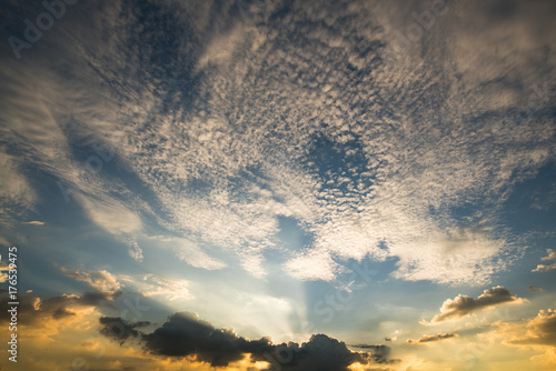 Fototapeta premium Sun rays through clouds like an dramatic explosion , power nature background.