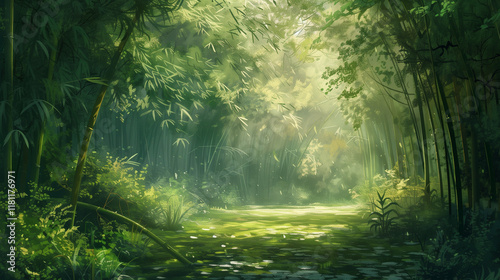 © Sehrish, Naklejka premium sun rays through the forest