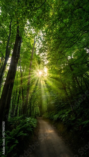 © Rayhan, Obraz premium sun rays through the forest