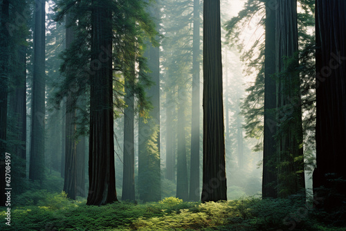© Anti, Obraz premium sun rays through the forest AI generated