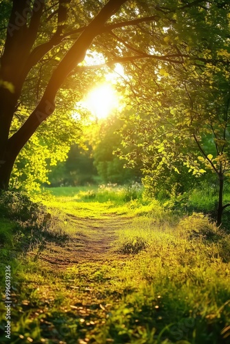 © Mehak, Obraz premium sun rays through the trees in forest