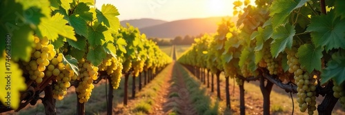 © Pawat, Fototapeta premium Sun-Ripened Grapes Hanging Heavy on the Vine A Picturesque Vineyard Harvest