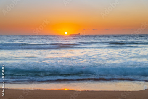 © Merrillie, Fototapeta premium Sun, sand, ship sunrise seascape