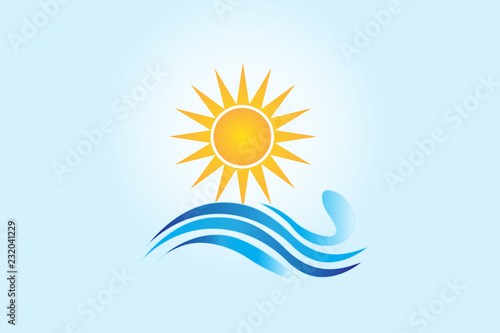 Obraz premium Sun sea waves logo vector design