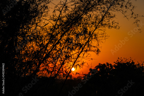 © Arijit55, Naklejka premium sun sets behind the bamboo