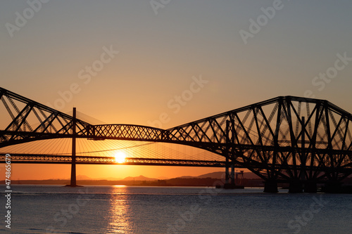© kris1138, Fototapeta premium Sun setting behind Forth Rail and Road Bridges