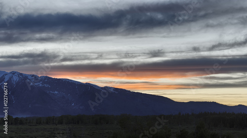 Obraz premium Sun setting behind the Tetons, Grand Teton National Park